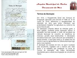 Documento do mês de junho de 2009, que teve como objeto de divulgação o documento "Termos de abonação", respeitante ao documento "Termos de abonação nº 205, de 21 de Agosto de 1922, que consta do Livro de termos de abonação 1922, do Fundo da Câmara Municipal de Tavira.