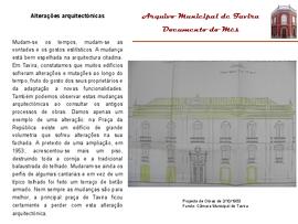 Documento do mês de julho de 2011, que teve como objeto de divulgação o documento "Alterações arquitectónicas", respeitante ao Projecto de Obras de 2/10/1953, do Fundo da Câmara Municipal de Tavira.