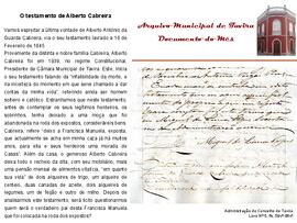 Documento do mês de novembro de 2011, que teve como objeto de divulgação o documento "O testamento de Alberto Cabreira", da Administração do Concelho de Tavira, que consta do Livro Nº 5, fls. 59vº-66vº, do Fundo da Câmara Municipal de Tavira.