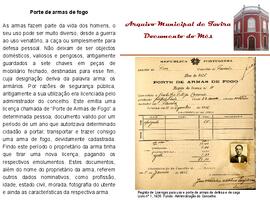 Documento do mês de dezembro de 2011, que teve como objeto de divulgação o documento "Porte de armas de fogo", respeitante ao Registo de Licenças para uso e porte de armas de defesa e de caça, que consta do Livro nº 1, 1926, do Fundo da Câmara Municipal de Tavira.