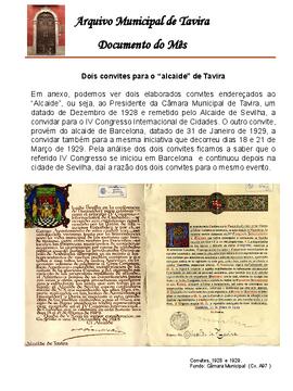 Documento do mês de outubro de 2013, que teve como objeto de divulgação o documento "Dois convites para o “alcaide” de Tavira”, respeitante à séri Convites, 1928 e 1929, do Fundo da Câmara Municipal (Cx. A97 ).
