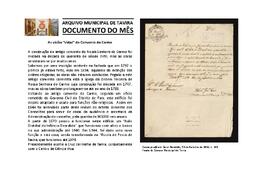 Documento do mês de julho de 2019, que teve como objeto de divulgação o documento "As várias “vidas” do Convento do Carmo", respeitante à Correspondência Geral Recebida, 31 de Outubro de 1844, A. 166, do Fundo da Câmara Municipal de Tavira.