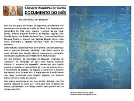 Documento do mês de janeiro de 2020, que teve como objeto de divulgação o documento "Planta de Tavira, em “blueprint”", respeitante à Planta da cidade de Tavira, 1913, do Fundo da Câmara Municipal de Tavira.